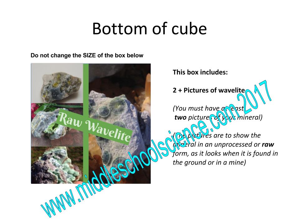 - 4. Add pictures and videos of your mineral cube by Monday to the slides posted for 5/11.
