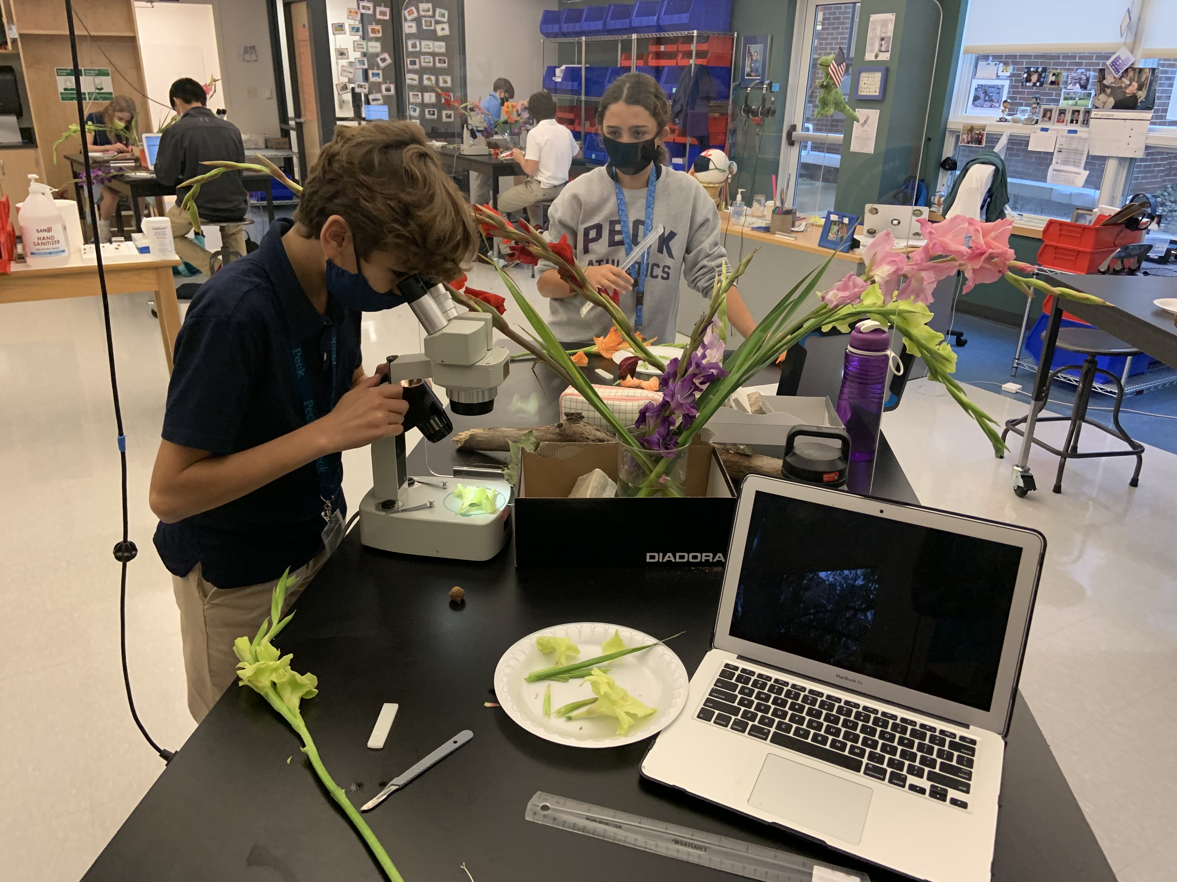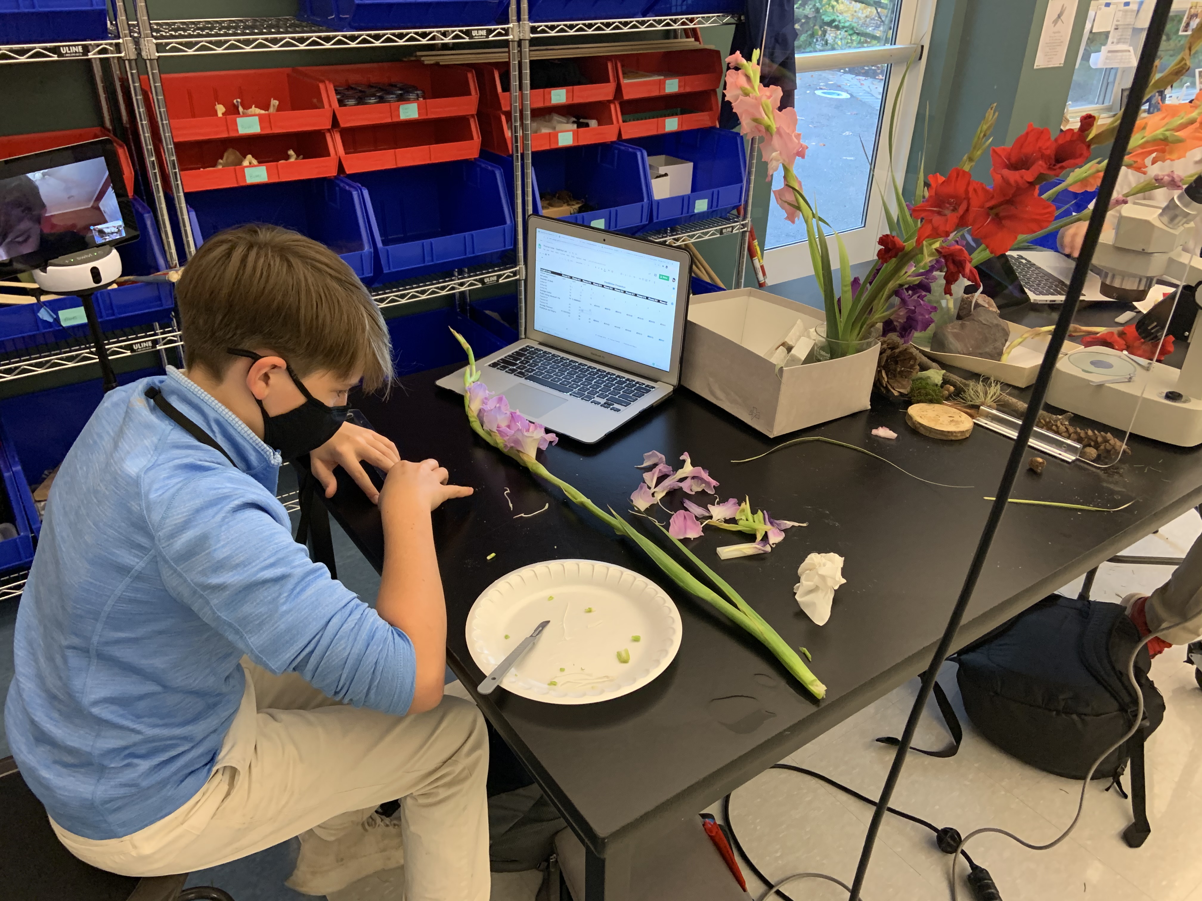This was one of my favorite dissections, I learned about it when I was a new teacher in the late 90’s from a veteran life science teacher. Most flower dissections have students dissect only one flower that is fully developed, open, and releasing pollen. For the gladiolus, you have a living timeline of flower development from fully opened to tiny undeveloped flower buds all on the same stalk.